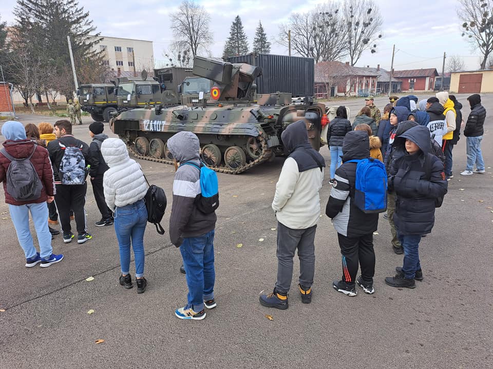 Școala Gimnazială Calistrat Hogaș Roman, în colaborare cu Centrul Militar Județean Neamț a organizat o întâlnire cu 180 de elevi și cadre didactice, astăzi 04.12.2023 la Baza 3 Logistică „Zargidava” Roman, în contextul manifestărilor dedicate Zilei Naționale, corelate cu programul Ministerului Educației Naționale „Școala Altfel”